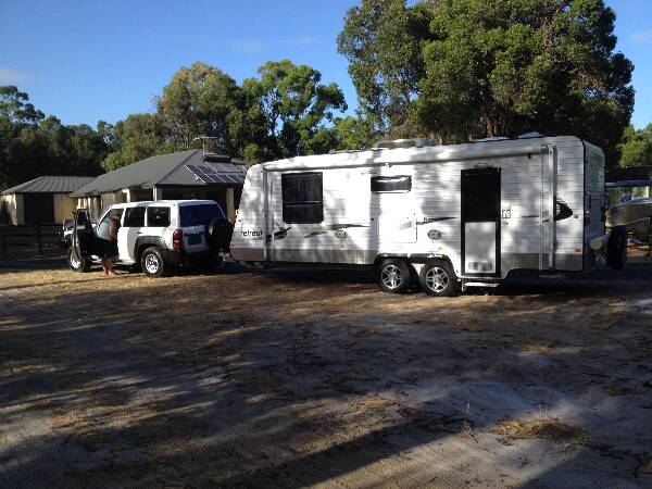 After months of planning moving belongings into storage and living in the caravan parked in the shed for the last week and a half the day has finally arrived we are heading off. Today's plan is to drive to Mandurah get the caravan serviced then head to Benger for the night and catch up with Steve, Jen and the kids.