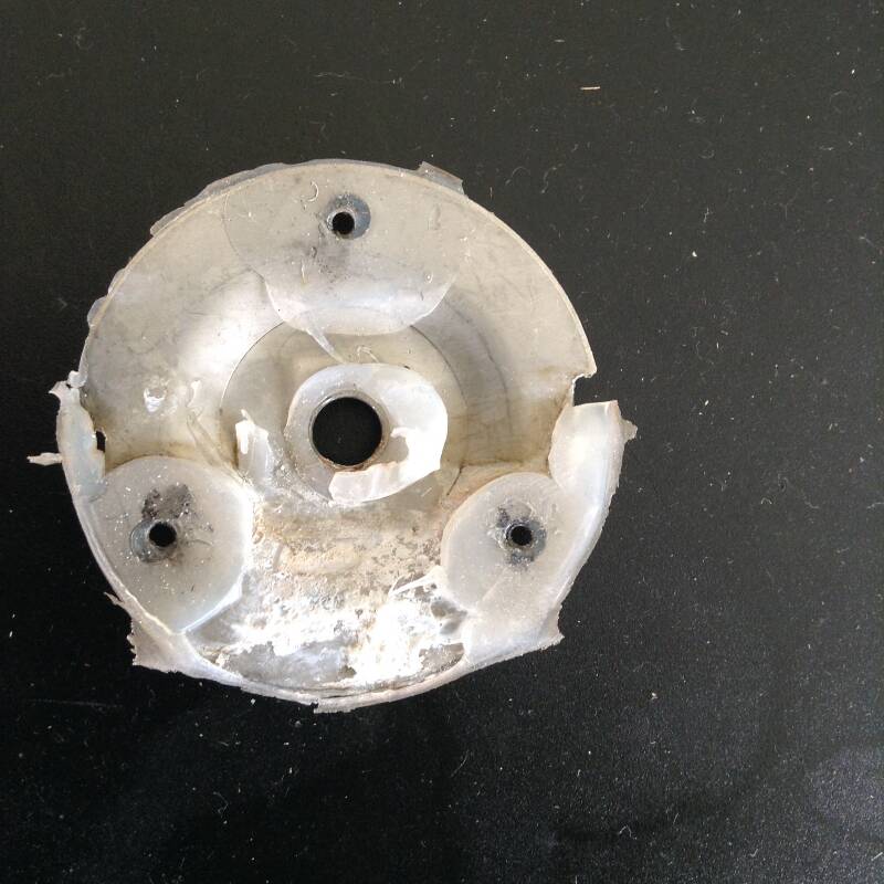 Eventually getting the cap off we could then see the mounting post had become separated from the wall mounting plate. Looking at the internet diagram we could see the posts are actually attached to the mounting plate by a single threaded screw. We could see the mounting plate was still firmly attached to the wall but the screw attaching the post to the plate seemed to have had come out. When we removed the mounting plate from the wall and retrieved the screw discovering that the screw itself had rusted away.