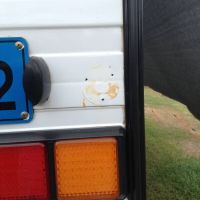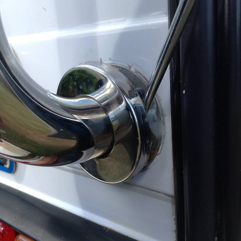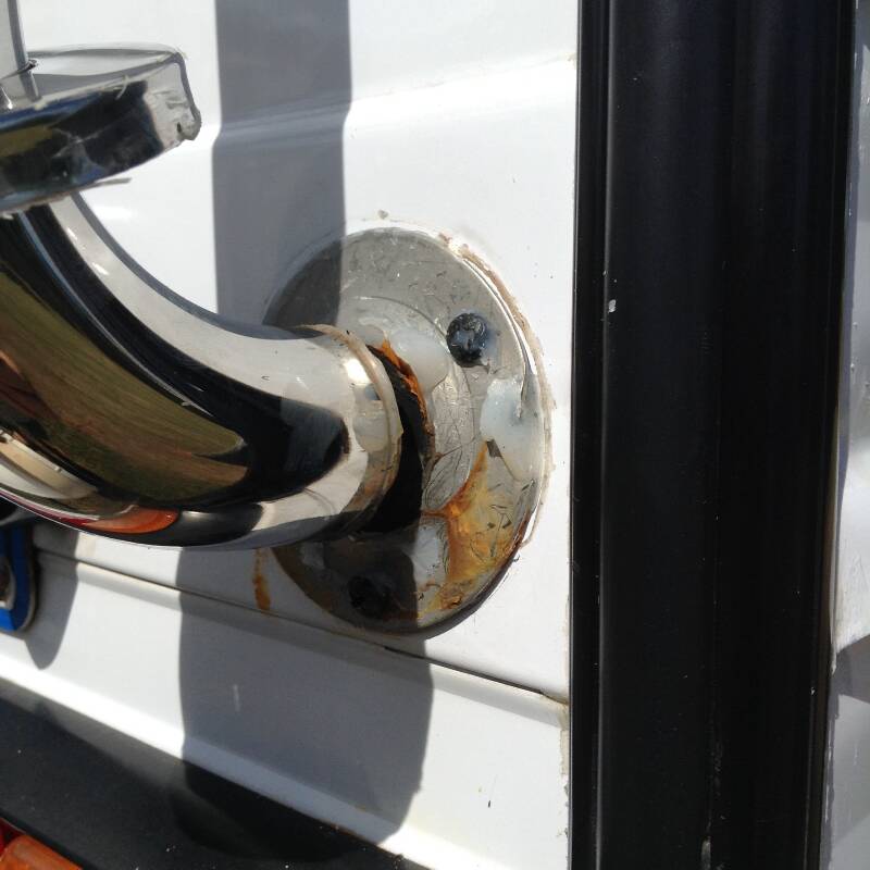 Take the grab rail on the rear of our van. It runs along the full width of the back and is held on by five fixing positions called posts, two on the left, two on the right and one in the middle. A few months ago at a free camp in outback Queensland we noticed rusty water stains on the wall under the right hand side bottom post. That doesn't look right we thought so concluding water must be trapped we cut the silicone around the post to see if we could release it. To our suprise the bottom post popped out with rusty water flowing out.