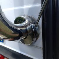 What to do next. I tried to get a price on a replacement bar from Retreat but at this point in time have not heard anything from them. I though of completely doing away with the bar and purchasing new grab handles for the left and right sides then put something in the middle to seal and hide the hole. The concealment caps have also been damaged and we are not sure if you can buy them as spares. My latest thought is to clean up the bar, mounting plates and concealment caps as best we can. Purchase stainless steel screws to re-attach the mounting plates to the posts of the grab rail. Seal the hole in the middle with silicone and get something I can use as gasket to go between the mounting plates and caravan wall to act as an insulator and provide addtional sealing for the hole. Will let you know the outcome. |
