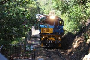 Next day we travelled to Kuranda for a look at the Market village. Our first stop was Barron Falls where you walk through the Rainforest on a purpose built boardwalk. At the end is the train platform for the Kuranda Scenic Railway whe passengers can alight for a birds eye view of the Barron falls. As we started our way backup we watched the first train for the day came into view stopping at the platform where swarms of tourist came out and us thinking we timed that well.