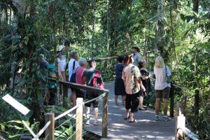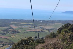 You get a great view from the gondola as you pass over the rainforest canopy below. There are two stops along the way, one at Barron Falls where you can view the falls from the otherside and a second stop/transfer point where you take a boardwalk loop through the rainforest at the top of Red Peak. Getting back in a gondola the final leg takes you down the hill towards Smithfield taking in great view of the Cairns coastline. You can stop for a coffee at the base station before reversing the trip and head back to Kuranda. Travelling in this direction worked well for us as we missed all the queues of people and crowded gondolas.