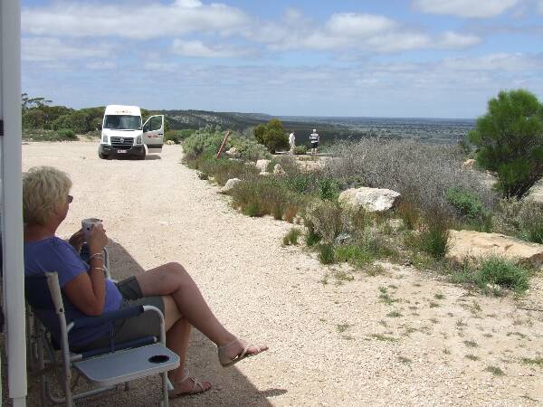 Apart from staying at Fraser Range we have been camping at the rest areas or free camping as they call it. It has been a great way to meet some wonderful people. We are taking it slow at the moment lucky to do 250Km in a day and pulling up early. Anne might do a bit of sewing and me some reading if there is no one to have happy hour with. We are really roughing it Anne is about to have a hot shower then off to bed. Tea's finished and dishes done sitting back listenning to the iPod we might even watch a DVD tonight. |
