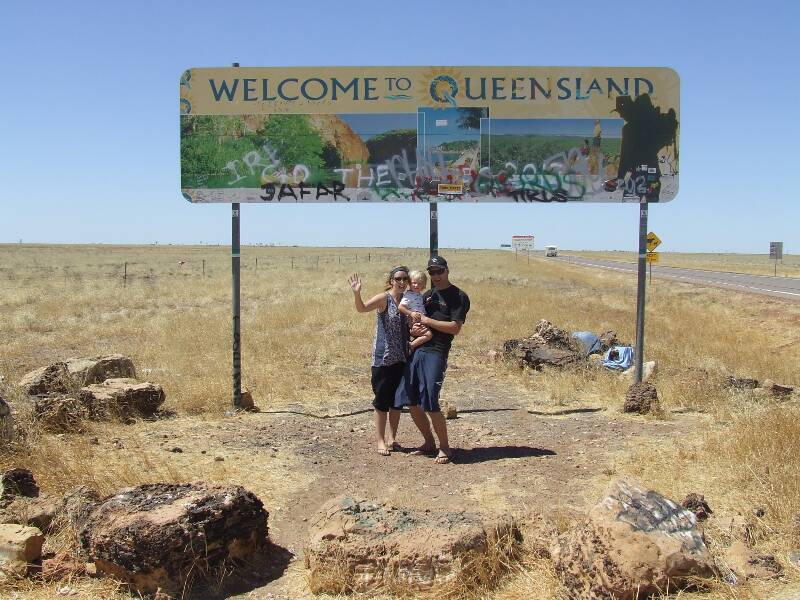 Leaving the next morning we headed once again east towards Camooweal about 210 kms further on from our camp spot. About 12 Km west of Camooweal we crossed the border into Queensland stopping for a photo and setting our clock another half an hour ahead this now makes us 2 hours in front of Western Australia.