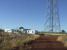 We travelled on a bit further where Carley had located a nice camp spot using wikicamps just below a disused Telstra Microwave tower about 500 metres off the main road. There was no one else there and just enough room for a couple of caravans. The tower was about 100 Metres high and Mike spying the ladder up tried to get someone to climb but there were no takers. A couple making the trek from Darwin to Sydney on push bike also pulled in to camp. There were from Germany and were quite happy for the company. The night was cool but crystal clear and we could clearly make out the cloud of stars forming part of our milkyway galaxy it was as you could almost reach up and touch them.