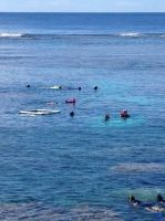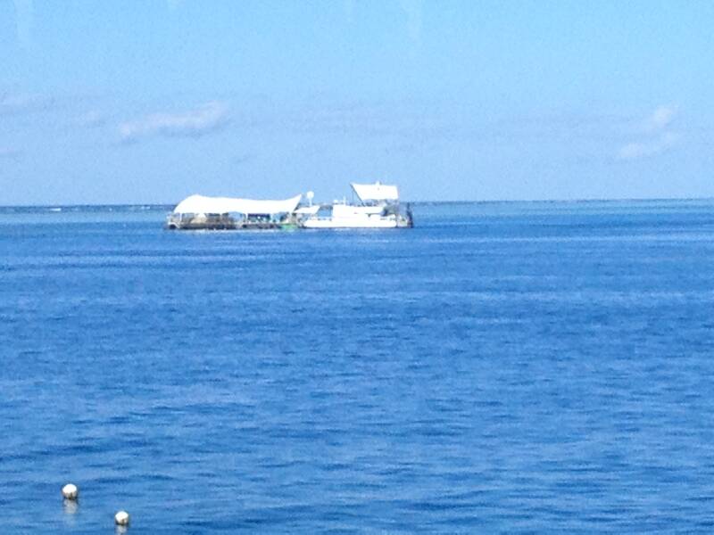 As we drew closer we could see our destination a pontoon which was permanently anchored next to a section of the reef. The water was crystal clear and we thought about going straight in for a snorkle but past experience has taught us do the included and paid for tours first as you can run out of time real quick. |