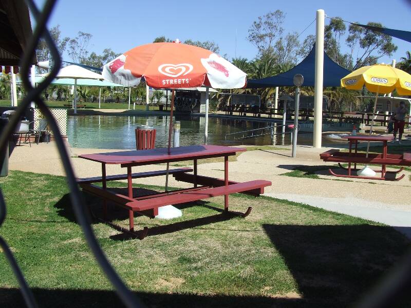 The next stop for us was Blackall a town about 100km from Barcaldine. Traditionally tourist have just driven through these small towns without stopping but the towns are now starting to offer tourist a reason to stop. One of the big drawcards for stopping for anybody who has a self contained caravan or motorhome is a place to camp overnight close to or in town which is free or low cost. In turn this hopefully gets people to spend some of their money around their town. Some places only offer a piece of ground where others are offering water, dump points, shower and toilets. They may also offer local tourist attractions as in Blackalls case the steam driven wool scourer or hot water swimming pool and spa.