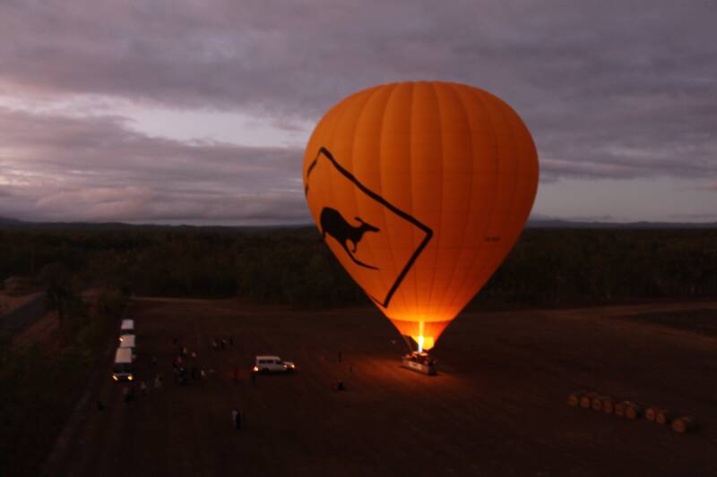 Next morning at 05:15 we waited at the designated meeting place outside the Mareeba Information Centre where a bus would pick us up and take us to the launch site. The bus arrived and the driver checked our name off on his list. He the started talking about us going to get a special treat and this was normally reserved for couples on specially organised flights.. I though he was trying to upsell something and couldn't quite hear what he was saying but when he didn't ask for any money we just went along with it hopefully nodding and smilling at the right times.