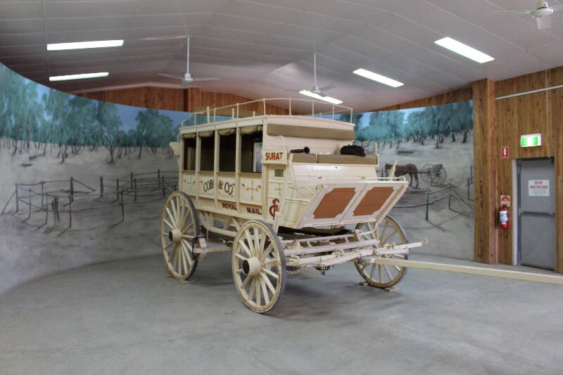 Next day we left Roma and headed south once again. It was at least a nice fine day and about 3km out of Roma turned onto the Carnarvon Hwy towards St George. We made a stop in Surat about 80km south of Roma. Surat is a small town and was a staging station for the Cobb and Co stage coach services right up to 1924 when Horse drawn gave way to the motorised vehicle as a primary means of transport. As the Coach would come in fresh horses would be prepared and changed over when the coach arrived while the passengers were refreshing themselves for the next leg of the journey. There is a fully restored Cobb and Co coach in Surat's Heritage Museum.