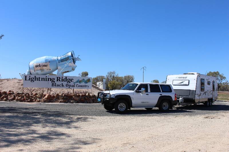 Next morning we headed again south crossing the border. Unfortunately there were no parking areas for us to stop and take a picture of us standing in front of the border crossing most disapointing. About 45 minutes later we arrived in Lightning Ridge which is famous for the black opal and a steaming hot artesian pool. We checked into the Opal Caravan Park a new park opened in 2011 and is a member of the Top Tourist chain The park is large and has many drive through sites which are all gravel. The park is only 200 Metres from the Artisian pool. We unhitched and headed into town for a look around. There are a number of tourist attractions such as John Murray's outback paintings. Other attractions we planned to visit was the Chamber of the Black Hands, The Big Opal Mine and the Bottle House. |