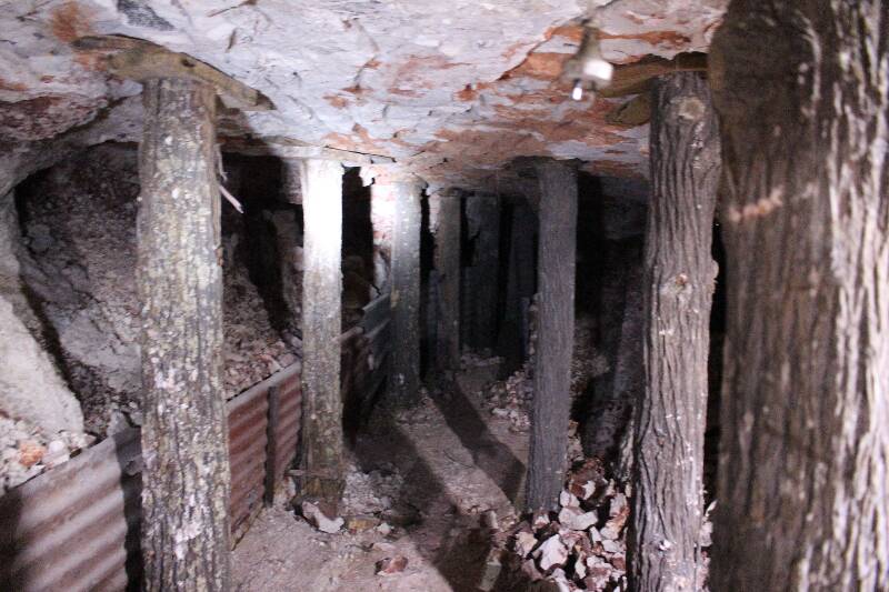 The Chamber of the Black Hand is a mine of two levels the upper level containing wall carvings while the lower level is where the mining is still done. The upper level is accessable by a long staircased ramp going down about 45 metres. The tour starts in the lower level which is accessable via another tunnel which goes down 60 metres where a knowlegable guide shows you through the workings of the mine describing the process of opal mine as he goes.