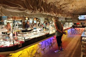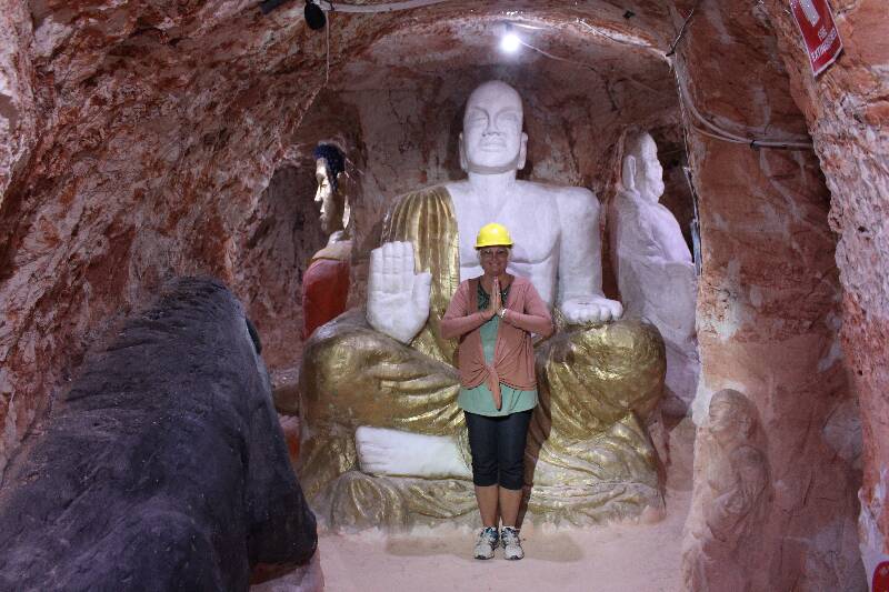 Once the mine tour is complete you then return back to to the upper level where at your own pace you can walk through tunnels with many carvings of various themes such as an egyption area, Super hero area. There is also a wall of carvings depicting past and present Australian Prime Ministers. There is also carvings of many of the cartoon characters as well as mythical monsters. This level also contains the gift shop where you can buy opal adorned jewelry.