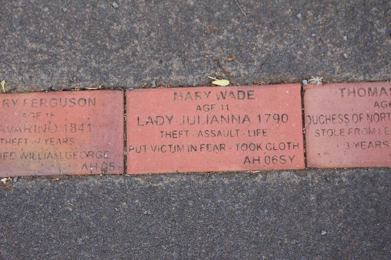 Along the Main Street there is a single line of bricks which traverses from one end of town to the other. Each brick has the name of a convict, the age they were sent to Tasmania, the ship they came on and the crime they committed. Itis a stark reminder of how harsh times were in England seeing the servere sentences handed out for such minor crimes and just how young some of these convicts were.
