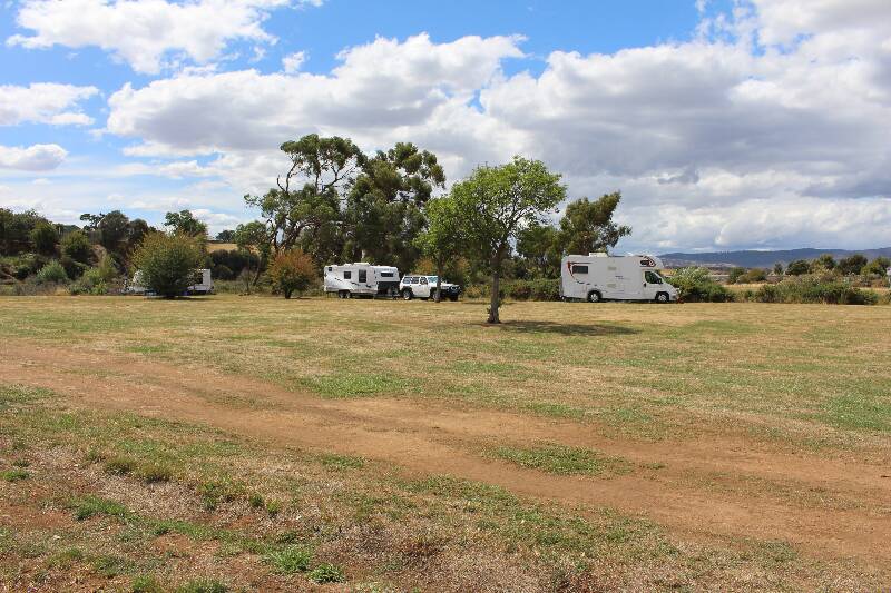 The Midlands Hwy links Launceston to Hobart through the middle of Tasmania. As it will be approx a week before Mick and Carley are in Hobart we plan to stop and free camp at some of the historic towns along the way. Leaving Launceston the first town we passed through was Perth which is no where near the size of its West Australian name sake but we did breifly feel like were were travelling home. From Perth we continued through the rolling hills arriving in Campbell Town. We located the free camp area in a large field on the edge of town just pass the old convict built bridge. We setup camp near the river using a row of bushes as a privacy screen.