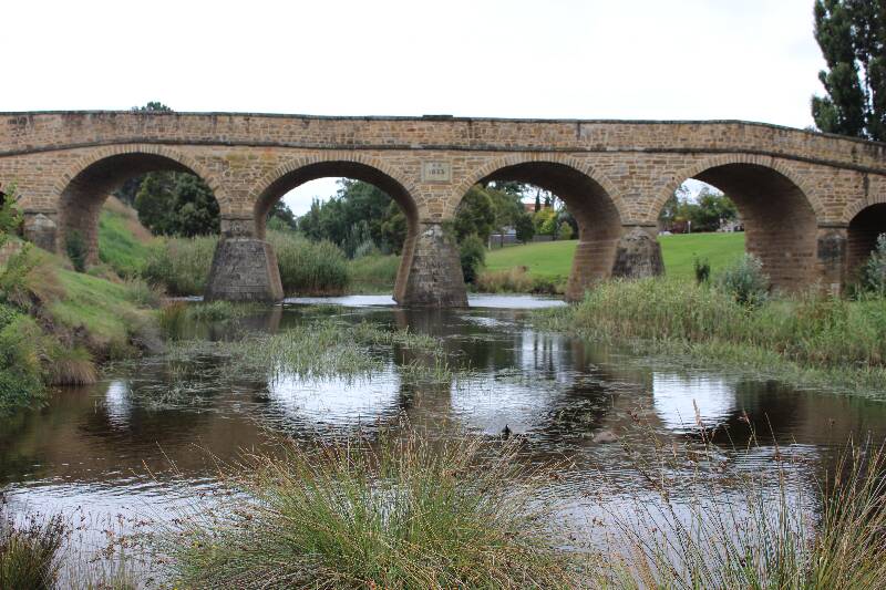 The Midland Hwy follows the convict trail with many of towns along the way having links with convict history. In Campbell Town there a many reminders of the convict past. The red brick bridge which passes over the Elizabeth river was built by convict labour It is comstructed with 1.2 million bricks and took 2 years to build. The bridge was designed by a convict and is the oldest brick bridge still in use today.