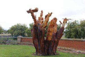 Between the camping area and the red bridge are a series of carvings from trees that had died. They depict different ages of Australian life from the convict era to modern day. Campbell Town has a vibrant city centre for such a small town there are a number of cafe's and boutiques which you can eat at or browse through. The main highway going through the middle of the town and being approx halfway between Hobart and Launceston helps keeping the people coming.