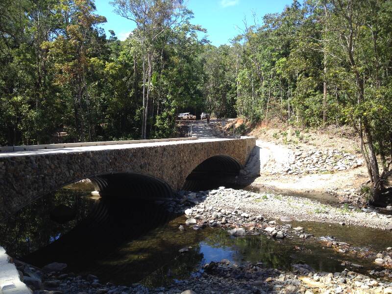 Next morning we packed up and headed off north again. At the end of the Bitumen is the start the Bloomfield track which is designated as 4WD only. The receptionest at the lodge had said they needed to put the sign up as a suprising number of 2WD cars would try to navigate the track it's amazing where hire cars can go. We had heard there were a few river crossings and Anne wasn't to sure about that part. The track had suffered some damage from the last cyclone but Main roads were in the process of fixing it up so parts of it were in really good condition. We came across the first river crossing and stop to have a look. It wasn't much more than ankle deep and about 20 metres wide so didn't look to much of a challenge. I did engage the hubs though according to the advice we had been given this helps against the possibility of losing traction on slipery rocks.