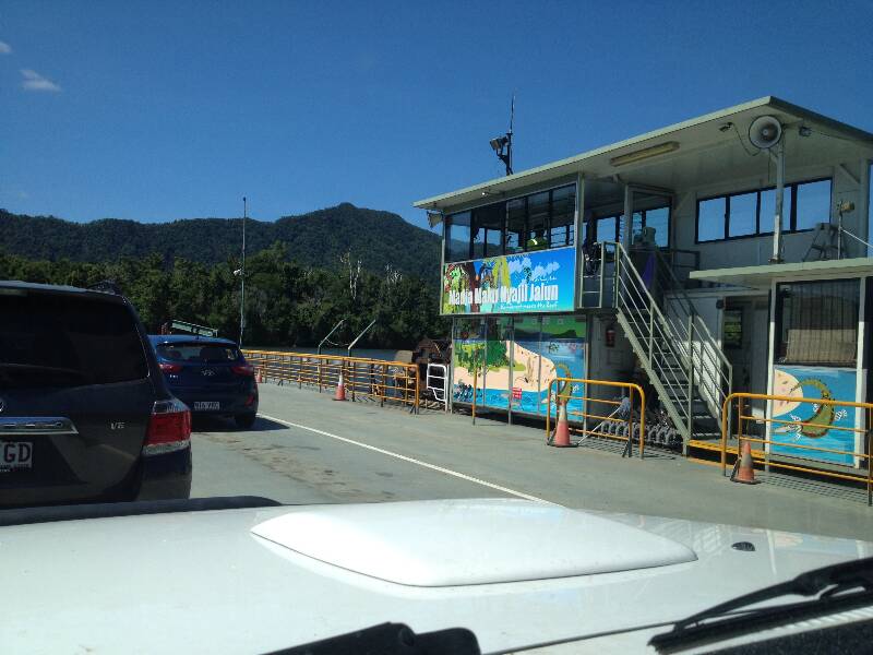Leaving Daintree we headed back towards the ferry which will take us across the river to Cape Tribulation. The only other way to Cape Tribulation is via Cooktown then back along the Bloomfield track. It cost $14 one way or $25.00 return for cars. The ferry is a cable pulled barge, carrys about 40 cars and takes 5 minutes to cross. Once on the other side we left the Ferry and headed along the Cape Tribulation Rd. The road could be better described as a bitumised track as it is not very wide and steep in places but suprisingly the traffic flowed okay without to many frights around bends.