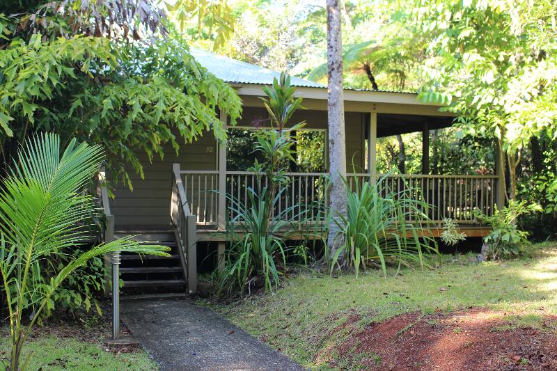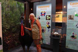 Our first pick was the Cape Tribulation Beach House which had been recommended by the Discovery Centre. Unfortunately they were having a wedding that weekend and had no cabins that suited us available. We back tracked a few kms to the Township of Cape Tribulation. Township is proberbly not quite the right description a collection of buildings in the bush is a better one. We tried a place called the Ferntree Lodge which had a cabin that suits our needs. Ferntree Lodge was quite comfortable they have a resturaunt and 2 pools in a setting surrounded by lush rainforest. The cabins were quite nice very clean with there own private facilities. There was a downside no TV, no phone and no internet reception this is starting to sound like Gilligans Island but there was a bar and you could order cheap pizzas for dinner so things were looking up. The Bar had to close though each time the waitress went to pick up the pizzas from the kitchen maybe there is a staff shortage out here.