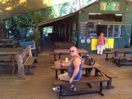 Travelling on towards Cooktown we came across the Lions Den Hotel near Helenvale. This is another one of those well known quirky pubs similar to the "Pub in the Paddock" in Tasmania or "Daly Waters Hotel" in NT where you have to at least stop look inside and have a drink or do Lunch. Inside it looked as though half the world had signed there name around the walls and on the roof. When we had arrived there was hardly a soul there but by the time 12 oclock rolled around the place filled with visitors.