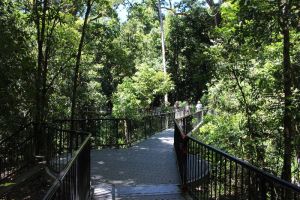 The gorge is located about 4 KM out of town. It was once considered a place where the locals went for swimming and relaxing but eventually became popular with the tourist as well. The number of visitors have become so large the access road directly to the Gorge is now blocked off and you park your car and enter via the tourist centre. You then catch a bus for a small fee which takes you down to the Gorge area itself. The bus completes a circuit from the Visitors centre to the old gorge carpark and back again every 15 minutes so you don't have long to wait for a bus. At the drop off point there are a number clearly marked walking paths you can take. Walking along the elevated boardwalk from the bus stop you pass through tropical rain forest before arriving at a lookout which gives a view of some of the many cascades and pools. From here you pass over a suspension bridge to a walk trail of about 2 km which takes you through more rain forest an some of the upper area pools. The walk is reasonably easy but there are some steep sections so a good level of fitness and mobility is need.