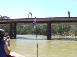 Leaving Deniliquin we headed towards Moama-Echuca via the Cobb Hwy. We passed through Mathoura stopping for a short break to have morning tea then continued on towards Moama. Our next accomodation is at the Maidens Inn Tourist Park where we planned o stop for about 3 nights. The park is listed as a Big 4 but also belongs to the Aspen Parks group. We managed to aquire a nice site right above the Murray river where we can sit and watch all the house boats and paddle steamers meander by. The site is large with plenty of room for both caravan and car. We have seen some funny sights on the river. We watched 2 people just float down the river summerged up to their necks just letting the current carry them along. There was also a guy in a foot operated paddle canoe drifting down the river fishing and a number of people braving the cold water going for a swim.
