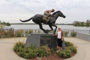 We also took a number of day trips to surrounding towns as driving distances between attractions are not great. One trip took us to Euroa which is about 50Km South of Shepparton. About 18km South of Euroa is a large hill called Mount Wombat about 900 metres above sea level accessable by a 4WD track. It is a fairly easy track to negociate except for the last 400 metres which was quite steep. The hilltop is used by the telecommunication industry for relay as well as by aviation to support navigation. From the top you can see for miles and the locals said you can see fireworks in Shepparton on a clear night. We did take a wrong turn on the way back and ended up in Merton. From there we took the scenic back through the alpine hills via Seymour and Nagambie. In the main street of Nagambie is a statue of Black Caviar as Nagambie was the horses birthplace.