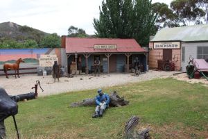 At Glenrowan is a tourist attraction I guess you would call a theme park which contains a number of rooms and outside areas containing computer controlled characters recounting the story of Ned and his gangs final demise during their last stand with police. Each room has a theme with the first an introduction. The next room was the bar of the hotel where the hostages were kept. Moving to the outside area where the shootout at the hotel followed by moving inside another room where you experience the hotel being set on fire to flush any of the remaining members of the gang out. The final room narrates Ned being hanged. It was a great experience and well worth the money.