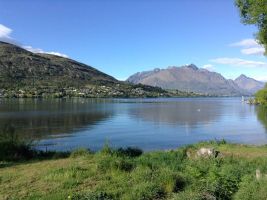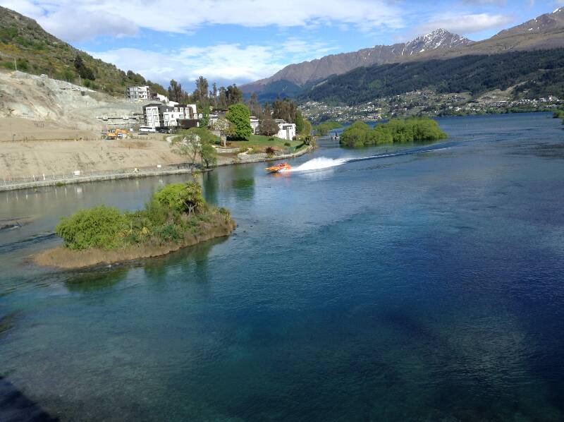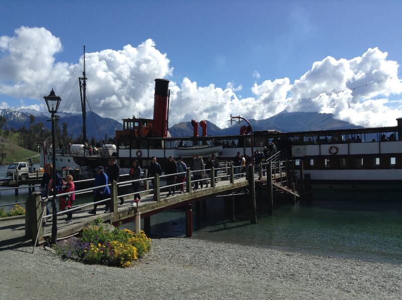 Day 8 Queenstown It rained overnight but the morning was clear. Fresh snow had fallen on the mountains and it was bright up enough (although a bit cold) for us to go for walk around the lake. We watched the jet boats passed under the bridge we stood on before returning back to our unit. Taking a drive into town we booked ourselves and Frank and Alice a lake cruise on the TSS Earnslaw as well as a horse trek over at Walter Peak.