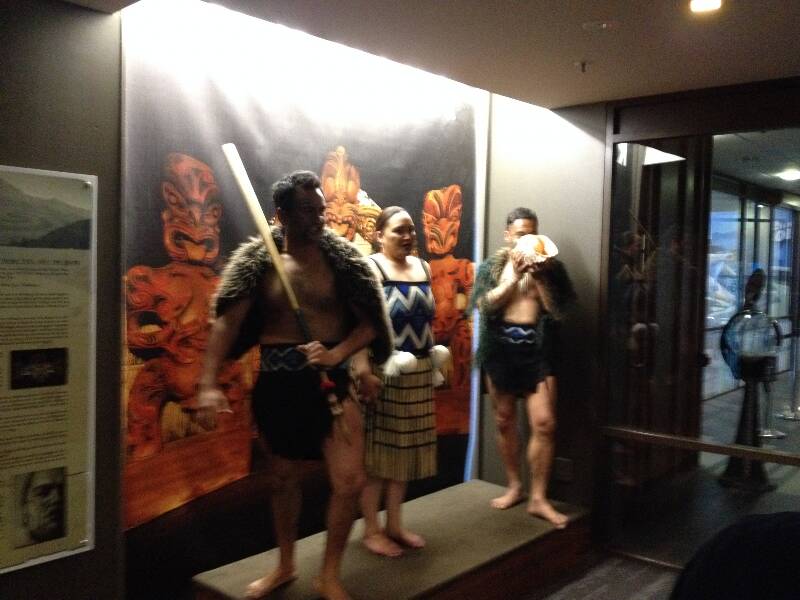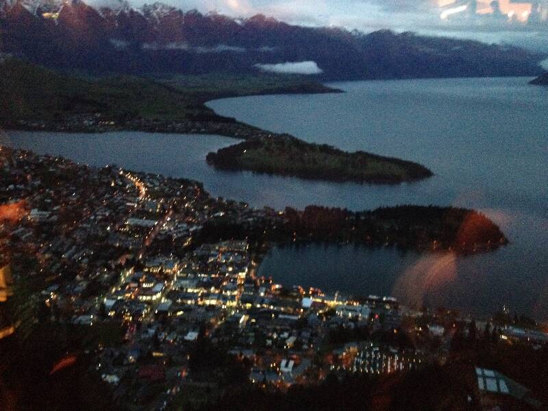 That evening we headed out for dinner at the Stratosfare resturaunt. We had intended to ride the luge beforehand but due to the falling rain we decided against it. Riding the the gondola the the rain on the windows had obscured some of the view but we could still make out Queenstown. Arriving at the top we all ordered drinks then Anne and I took in a Maori Huka demonstration which was hugely entertaining. The first part was somber as a sign of respect to their culture but the fun soon started with lots of audience participation. After the show we joined the others at a window seat overlooking Queenstown way below.