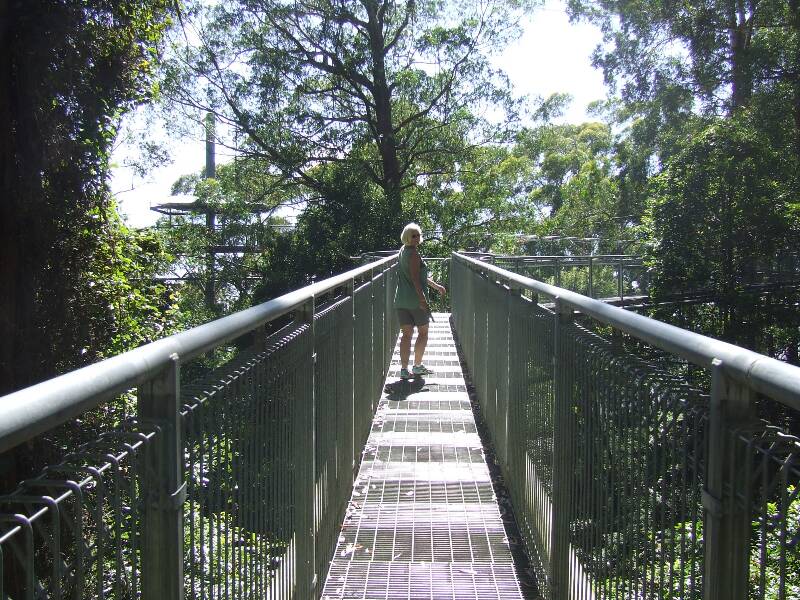 Next day the sky was clear and the sky was blue so we took this as an opportunity to drive up into to the highlands west of Kiama. Travelling up through Jamberoo along the Jamberoo Montains road we arrived at Illawarra Fly. This a park which has a treetop counterleavered walkway with a viewing tower and an option to fly through the treetops on a zipline... we opted for the Walkway only option. Raised to approximatly 50 metres above ground level the walkway gives you a birds eye view of the rain forrest just below the main canopy. Half way along you climb the tower to a higher vantage point where you have a spectacular view of the valley below and out towards the ocean. Here you can see the coastal towns of Wollongong and shellharbour quite clearly. To give you piece of mind about the strength and durability of the walkway there are signs along the way that say this walkway can survive up to a category 5 cyclone and withstand the force of 800 charging wombats with a combined weight of 28 tonnes. It had me thinking about how they managed to get 800 wombats all together to test it.