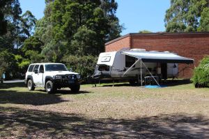 The Port Arthur road was the first real hilly and winding road we had tackled in Tasmania with the caravan in tow. At one point after tackling what I thought was a steep grade bumpy winding section of road I was begining to wondered if we should have left the van in Sorell. Arriving at the van park we booked in. Being so quiet after the long weekend they gave us a really big site just behind one of the BBQ areas with a high wall which would give us some privacy and act as a wind break. We were only on our site for 5 minutes when another car towing a van pulled up next to us also with WA plates. After talking with them we found they lived in Treendale (almost neighbours) and they were on a 12 month trip around Australia with their 2 school age children.