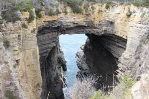 Close by are some natural coastline attractions one called the Tasman Arch another Devils Kitchen and the other was the blowhole. Tasman Arch is a natural bridge formed after part of the roof of a cave collapsed. Devils Kitchen is a similar formation except the whole roof collapsed leaving a grove into the coastline.