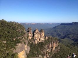 Returning the way we come we headed towards Katoomba along the Great Western Hwy. Arriving there we booked into the Great Western Alpine motor Inn. The Manager was a character and I thought could talk the leg off a chair. The Motel was nothing to look out from the outside but the rooms were recently redecorated and clean. The double glazing on the windows definately kept the road noise down. That evening we took a drive to Leura and along the cliff top drive back to Katoomba stopping at Echo Point which looks over the Tree Sisters rock formations. From there you can walk to the Three Sisters climb down a steep set of steps cross the bridge and sit under them. Finishing here we returned to our hoel room for the night.