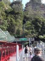 Next we took the Railway which is promoted as the steepest railway in the world. You ride the train which runs down a railway line at an angle of 52 degrees. Anne wanted to sit in the front so you got a great view of the egdge of the cliff and thin air before you went over. Fortunately the train doesn't travel at roller coaster speeds so its not as frighning as it drops over the edge to the valley floor below. You can tilt the seats back to give you a milder sensation of going over the edge or foward to 62 degrees which they call the cliff hanger for obvious reasons. The railway was originally used to get miners down and coal back up when coal mining was done there. We walked the 3 Km boardwalk on valley floor passing through the rain forest below before returning via the railway back to the main centre.
