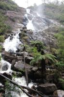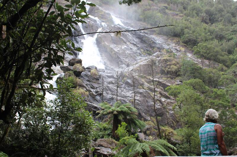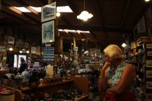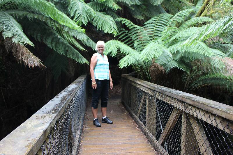 Next we drove to St Columbia Falls. Its about a 20 minute drive from the pub ariving you park at the top in a small carpark. You then walk about 600 metres through dense rain forrest along a well formed zig zag track crossing streams spaned by wooden bridges untill you arrive at the lookout platform at the base of the falls. The waterfall is mutli tiered and is approx 90 metres high. We had packed a picnic lunch and planned to sit at one of the tables but the weather was a bit moist so opted to return to the car for our sandwiches. On the drive back to St Helens we called into the Shop in the Bush. This shop mainly contains Antiques and Books all for sale took us about half an hour to walk around and have a look. A lot of the books were old and we did recognise a lot from our time it was interesting to read what our ideas were back 30 to 40 years ago kind of like a timecapsule of our ideas back in the 70's and 80's.