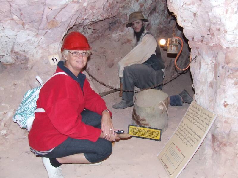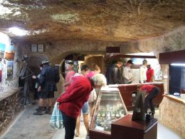 While in Coober Pedy we visted a number of the popular tourist sites. Most living and working in Coober Pedy is done underground but the shopping centre and service stations were all above ground. Opal selling is big with many a shop dedicated to this. A number of the shops also include museums and history tours of life working in a mine with some telling the storie of how opal was first discovered. There are a number of old mines in town setup for tourists to wander through such as Old Timers Mine and Umoona Opal Mine. There is even an underground bookshop and underground arts centre.