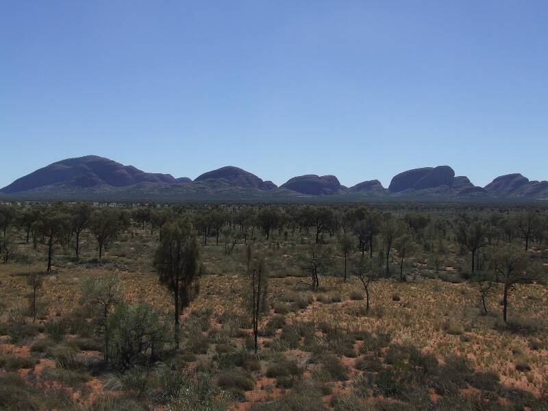 Lastly I had better mention Kata Tjuta or The Olgas. We only spent one day there so really didn't get a good look around but from a distance they are quite unique to look at. There are a couple of gorge walks but we only did the short one the Walpa Gorge Walk which is a nice walk fairly easy to do. There is only one way in and one way out with a deck at the end where you can admire the peace and tranquility. |