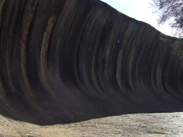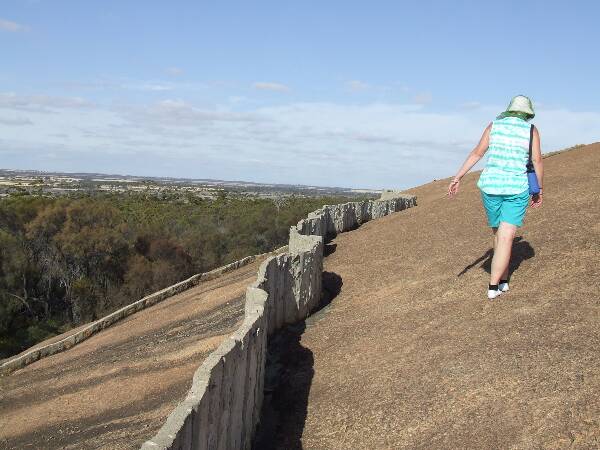 The caravan park is just behind Wave Rock with the major attractions within walking distance. After setting up we walked up to Hippo's Yawn then back towards and along Wave Rock itself. The wave was formed by millions of years of water errosion. A wall has been built across the top of the rock and is used to divert the water that flows over the rock to a water catchment dam next door. |