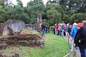 From here we motor to the notorious Sarah Island which was a penal settlement which predated Port Arthur. This is where he most troublesome and repeat offenders were sent. We alightened onto the island and given a guided theatrical tour of life as it would have been during the 1820s. There are a number of preserved ruins and our guide would stop at a select few and relate tales about what a convicts life would have been like and mischief they got up to as well as the people who had to look after them.