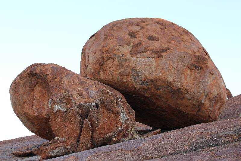 Devils Marbles are made of granite and are the result of weathering over millions of years. Like all the stone features in central Australia you can watch the colours change as the sun sets and enjoy the peace and quiet of the outback. Unfortunately the campground was quite full so not so much of the peace and quite but still the colour changes were nice. Through the night the wind decided to blow quite strongly rocking the van around a bit luckly we had rolled the awning in before going to bed but some of the others hadn't and at 2 am in the morning you could hear over the roar of the wind the familiar clicking noise or awnings being rolled back in.