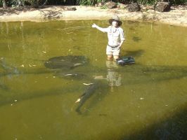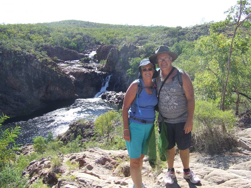 Edith Falls is a beautiful place there are a couple of walks of various lengths one which takes you up over the back of the falls to a number of upper plunge pools where you can take a refreshing dip. The walk is about 2.6 km part of it goes up a steep slope with another steep slope going down at the other end. The main plunge pool is a short walk from the campground and easly acessed via a set of steps into the water. From there if you feel adventurious you can swim over to the falls or around man made island of dumped rivver soil and stone. It was a little disconcerning that a crocodile trap had been set just down river past the bridge but we were sure this was for more of a precautionary purpose.
